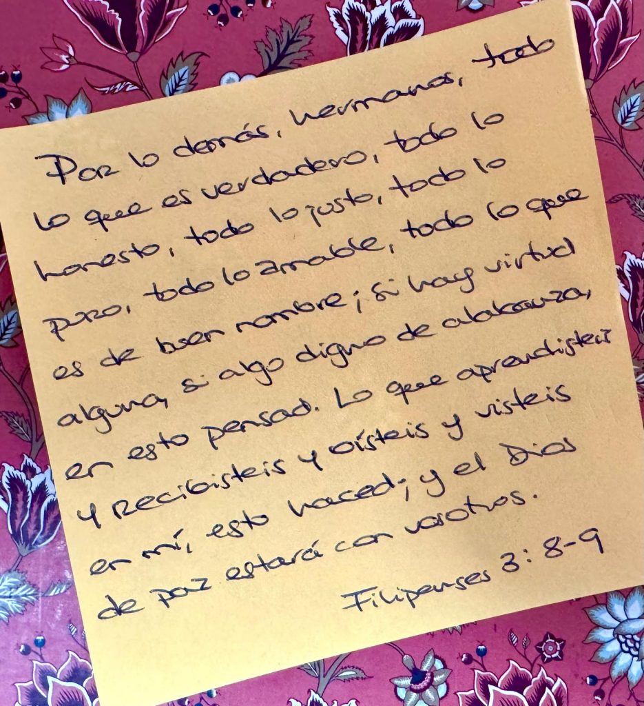 En mi andar con el Señor, descubro que cada día es un nuevo comienzo, que llega con una nueva revelación, instrucción, enseñanza y una nueva forma de ver la vida, que afirma mis pies sobre la Roca inamovible que es Cristo, para poder dar pasos de fe, como Pablo: «olvidando lo que queda atrás y extendiéndome a lo que está delante.» – Filipenses 3:13 NBLA