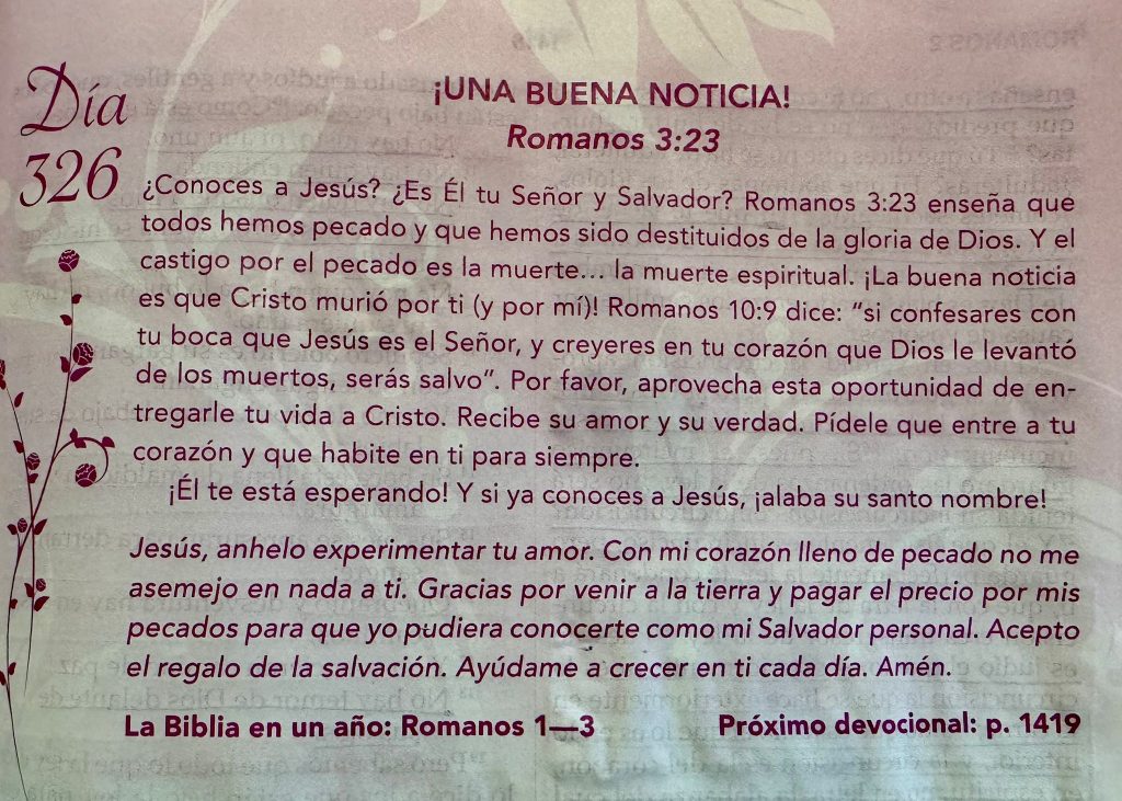 «Pero ahora, aparte de la ley, se ha manifestado la justicia de Dios, testificada por la ley y por los profetas; la justicia de Dios por medio de la fe en Jesucristo, para todos los que creen en él. Porque no hay diferencia, por cuanto todos pecaron, y están destituidos de la gloria de Dios, siendo justificados gratuitamente por su gracia, mediante la redención que es en Cristo Jesús, a quien Dios puso como propiciación por medio de la fe en su sangre, para manifestar su justicia, a causa de haber pasado por alto, en su paciencia, los pecados pasados, con la mira de manifestar en este tiempo su justicia, a fin de que él sea el justo, y el que justifica al que es de la fe de Jesús.»